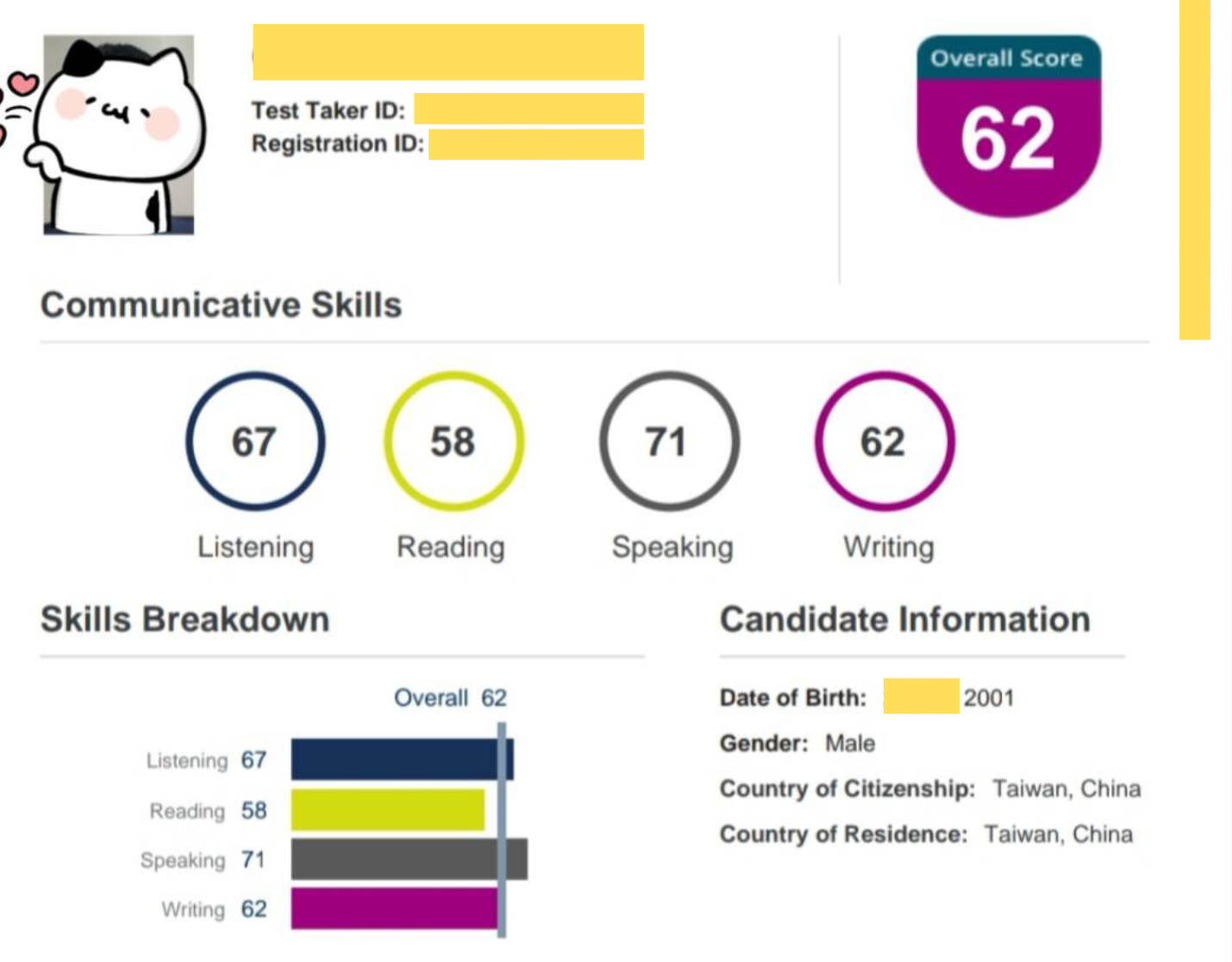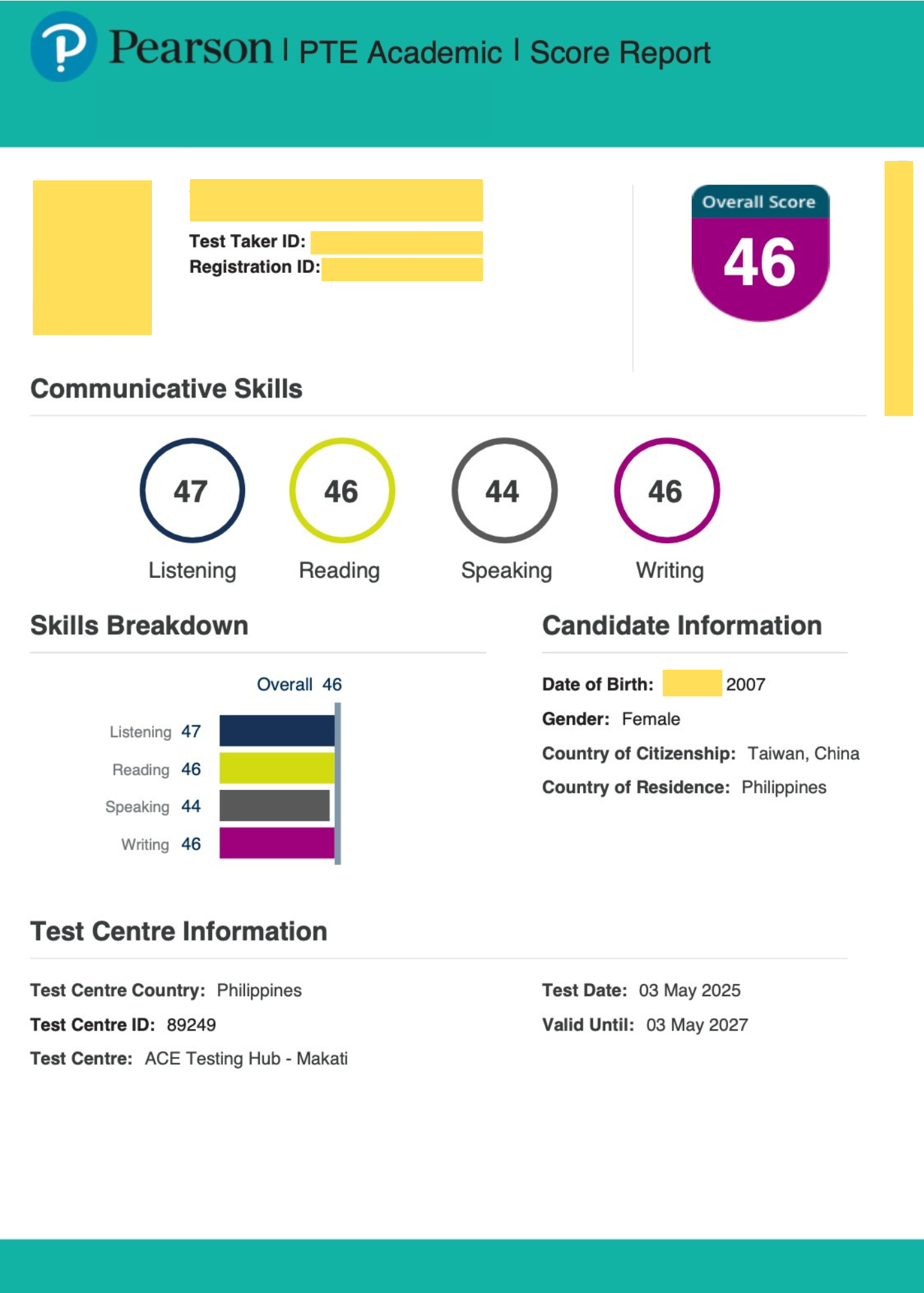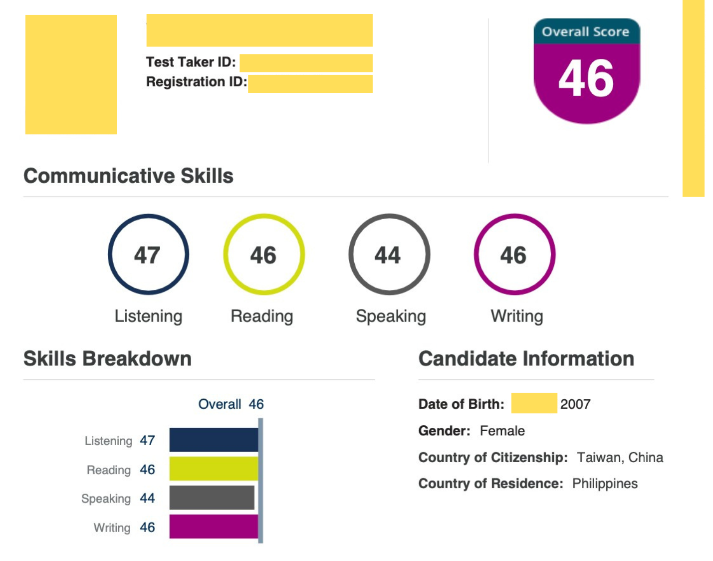 Listening:47|Reading:46|Speaking:44|Writing:46