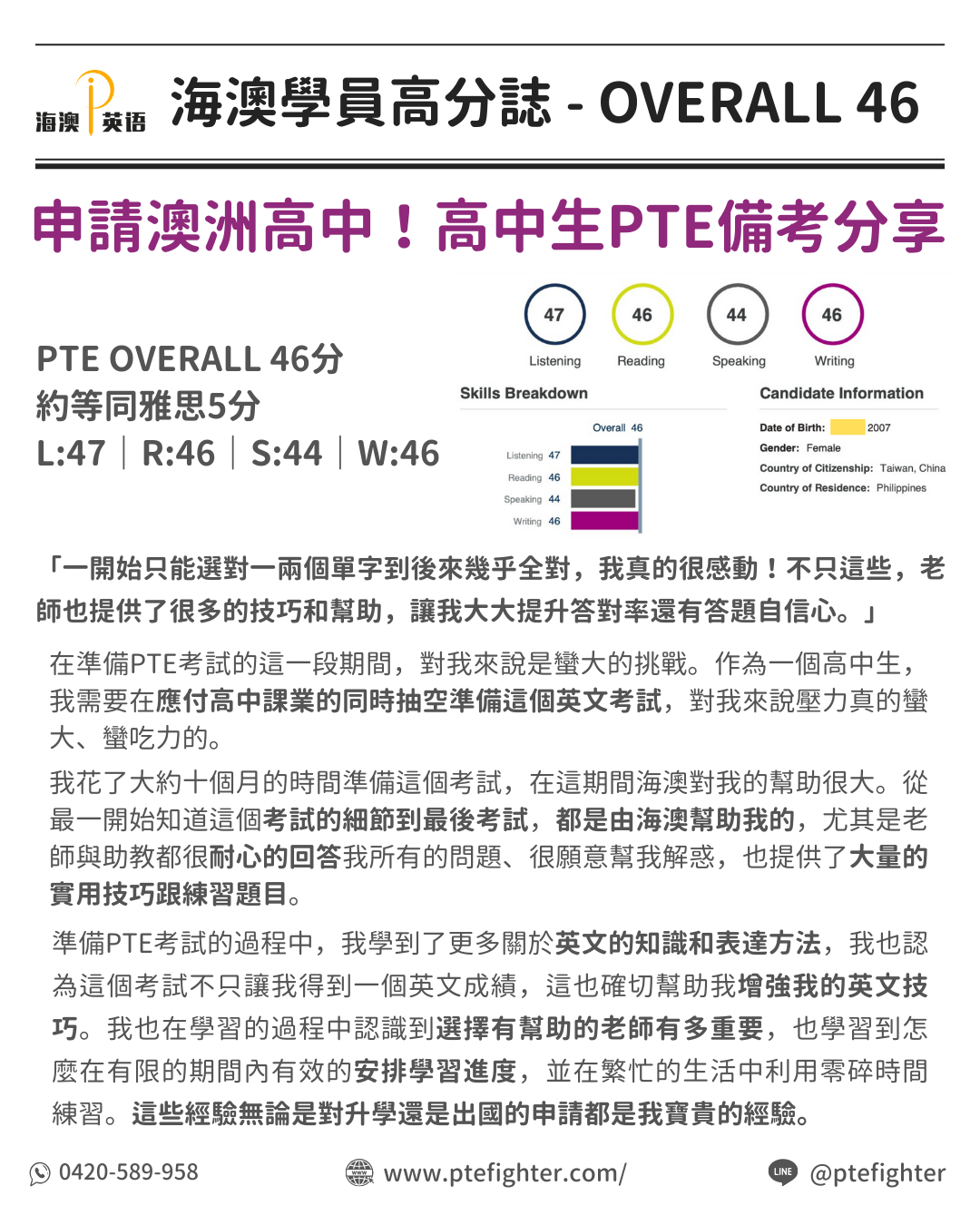 #海澳學生高分故事- 申請澳洲高中!高中生PTE備考分享