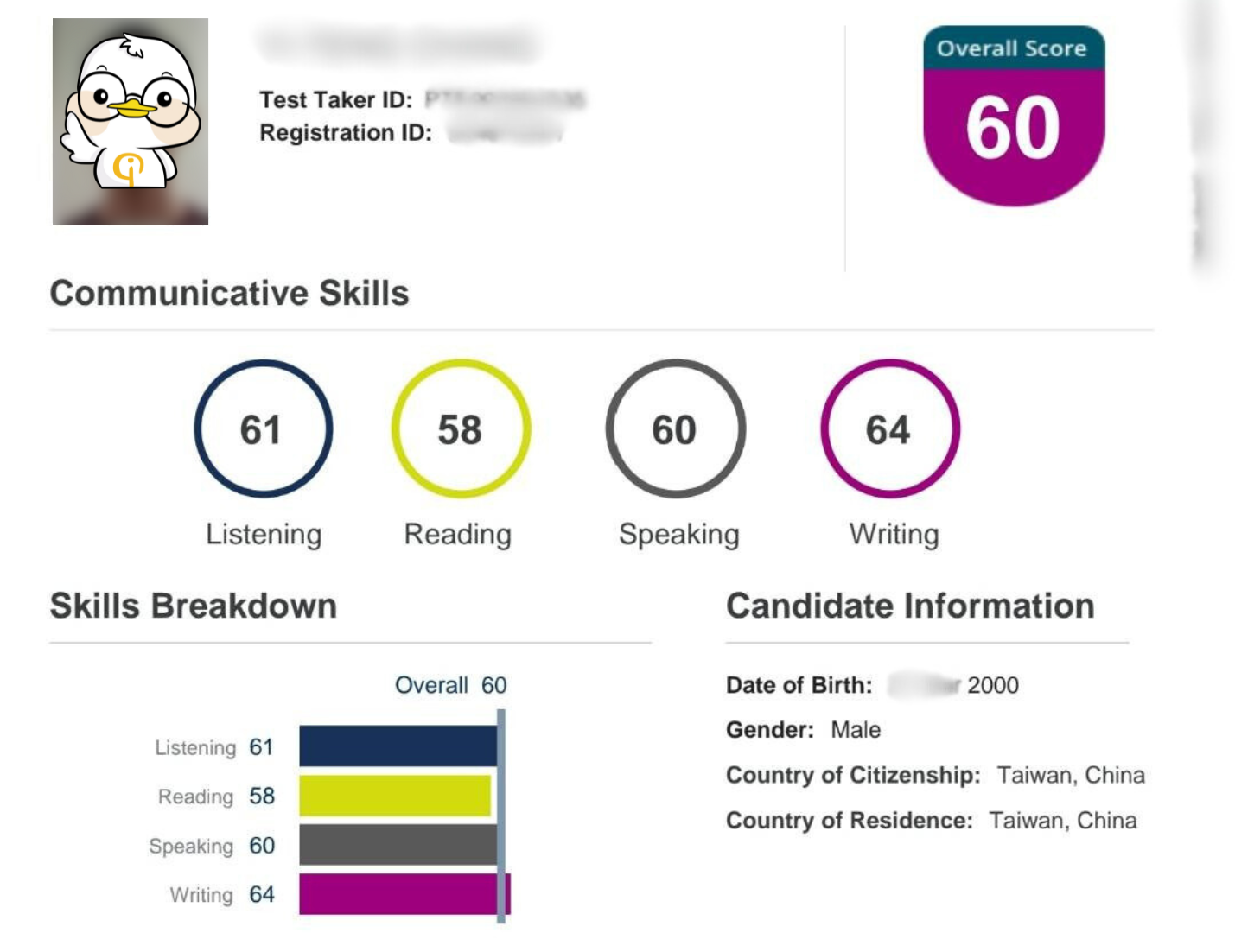 總而言之,準備PTE考試的過程中,我學到了更多關於英文的知識和表達方法,我也認為這個考試不只讓我得到一個英文成績,這也確切幫助我增強我的英文技巧。我也在學習的過程中有認識到選擇到有幫助的老師有多重要,也學習到怎麼在有限的期間內有效的安排學習進度,並在繁忙的生活中利用零碎時間練習。這些經驗無論是對升學還是出國的申請都是我寶貴的經驗。