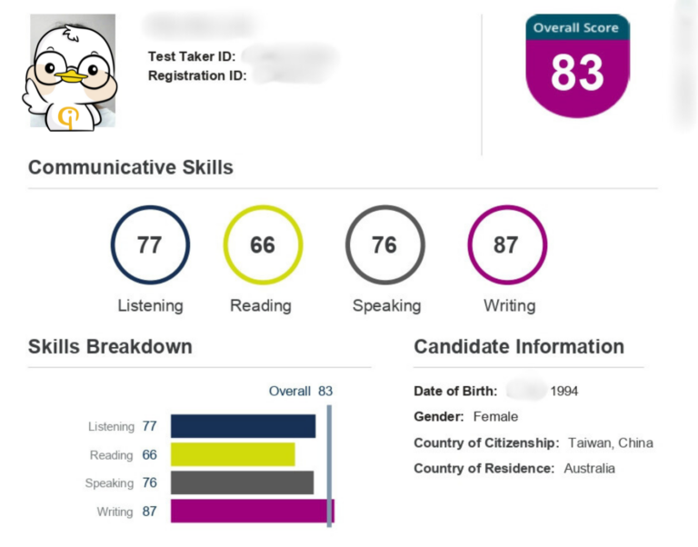 像是我自己感覺進步最多、最快的是口語中的Read Aloud,從一開始我沒有辦法把句子念順,甚至有很多單字都念不出來,到考試我可以相對自信地把該說的句子說出來,這是我認為經由上課的練習進步最大的部分。再來是聽力有個題型是Highlight Incorrect Words,這個題型我也感覺到我進步非常大,經過上課的練習和自己在家的練習,一開始只能選對一兩個單字到後來可以幾乎全對,我真的很感動!!!不只這些,其他題型老師也提供了很多的技巧和幫助,讓我大大提升答對率還有答題自信心。