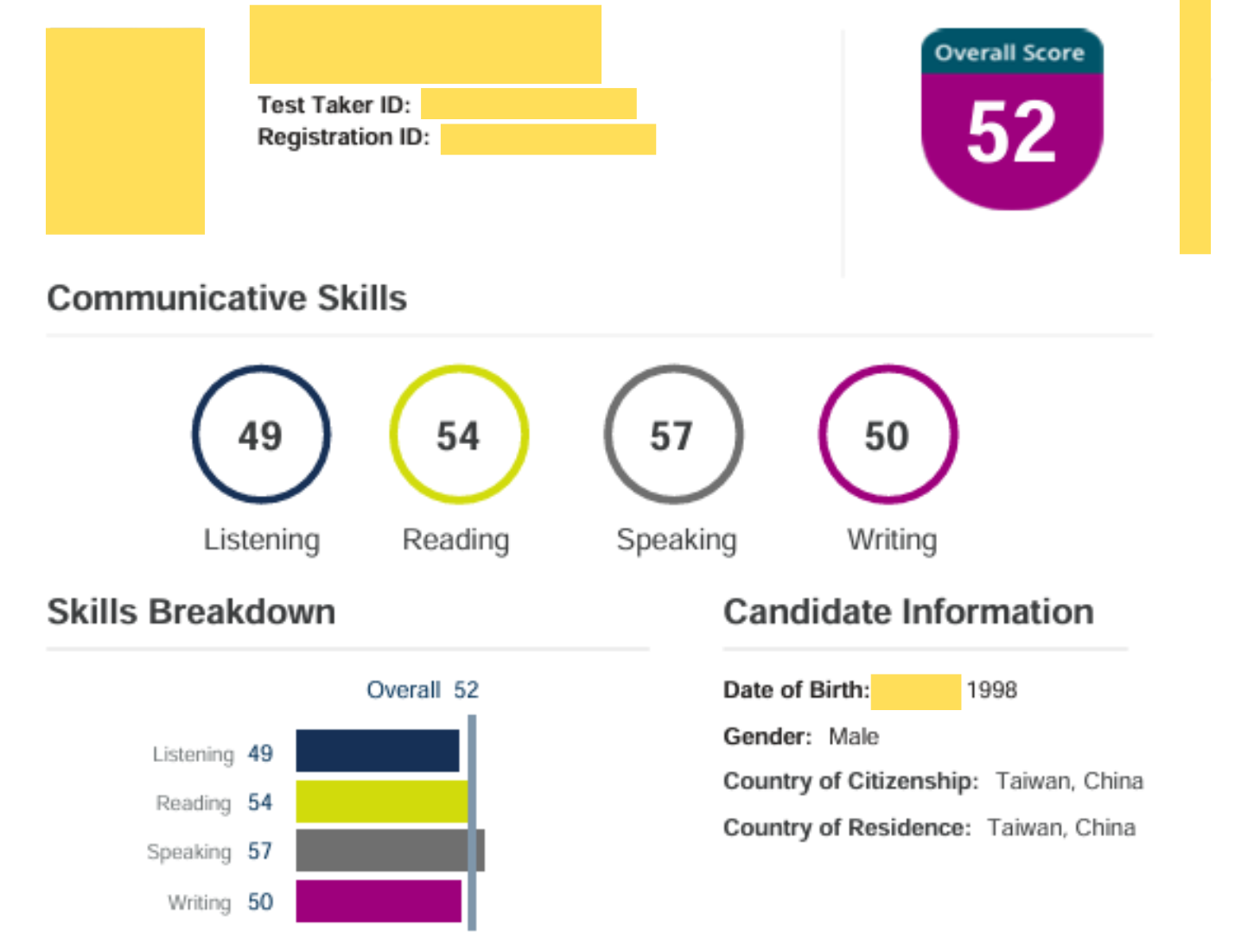 Listening:73|Reading:71|Speaking:80|Writing:67