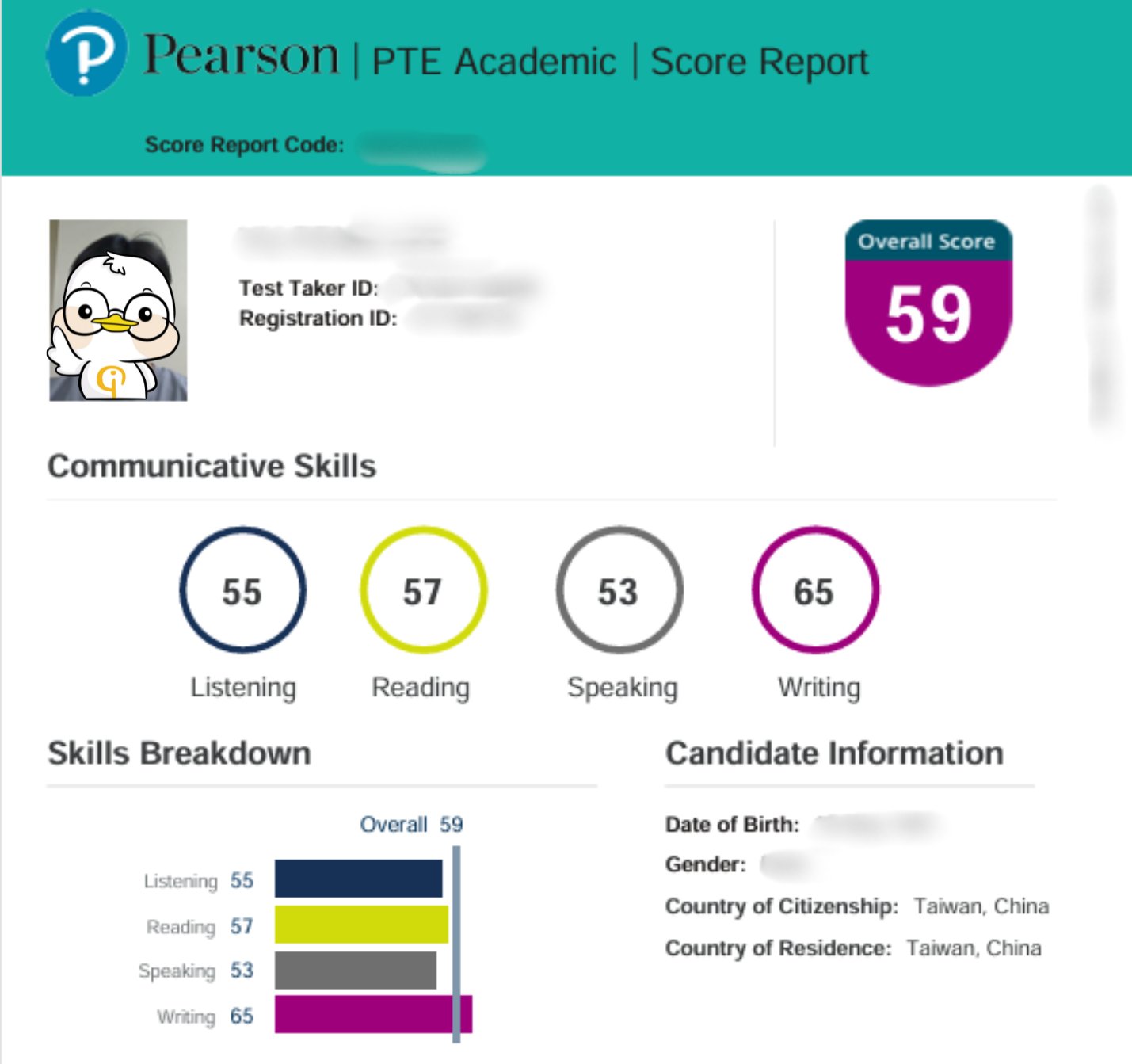 🔥PTE OVERALL 59分